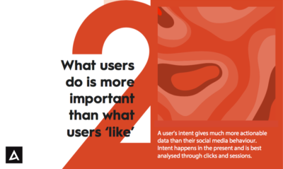 Intencja użytkownika daje o wiele więcej danych do działania, niż zachowanie w mediach społecznościowych. Intencja dzieje się w teraźniejszości i najlepiej analizować ją za pomocą kliknięć i sesji.