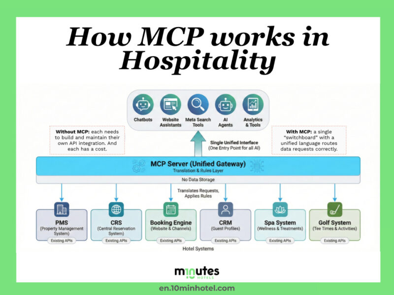 Model Context Protocol (MCP) to nowy standard technologiczny, który może realnie zmienić sposób integracji systemów hotelowych i otworzyć hotele na sprzedaż bezpośrednią z udziałem AI. Martin Soler wyjaśnia, czym jest MCP, jak działa jako „technologiczna centrala” oraz dlaczego może stać się jednym z kluczowych elementów przyszłej infrastruktury hotelowej.