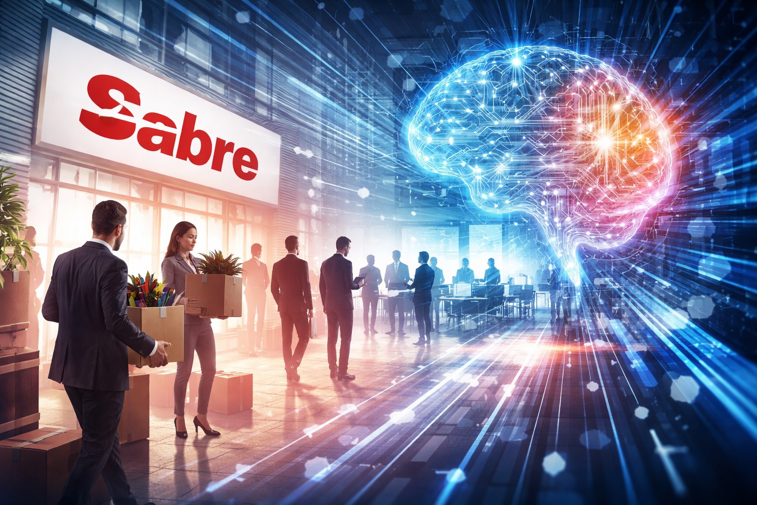 Sabre realizuje program restrukturyzacyjny skoncentrowany na obniżeniu i stabilizacji kosztów w latach 2026–2028, przy jednoczesnym przejściu do modelu określanego jako „AI-native”. W 2025 r. spółka ujęła 51 mln USD kosztów restrukturyzacji, a łączny koszt programu ma wynieść około 65 mln USD. Na koniec 2025 r. firma zatrudniała 4 650 osób. Działania obejmują redukcje zatrudnienia, zmiany w strukturze zarządczej oraz dostosowanie kompetencji organizacji do rozwoju technologii opartych na AI.